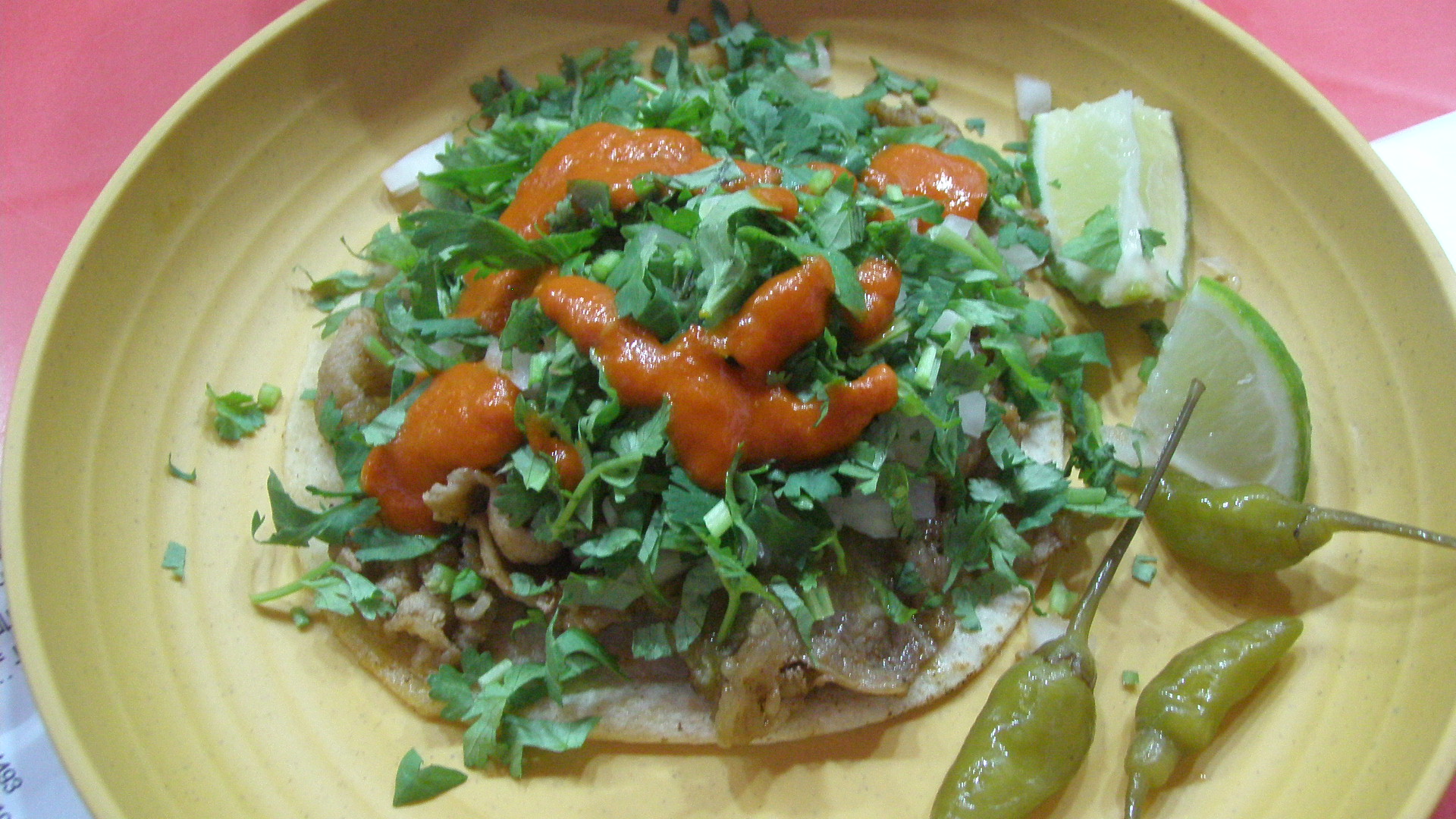 이 타코는 과자처럼 딱딱하게 나오는 타코인데 앞부분으로 와앙하고 먹으면 뒤에서 소스가 줄줄새어 나와서 좀 추잡스럽게 보일 수도 있으니 유의..